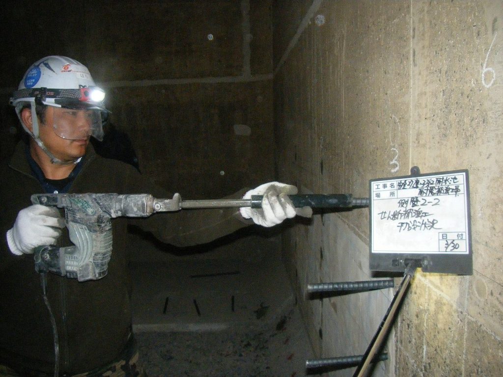 あと施工アンカー工事 CONSTRUCTION ANCHOR あと施工アンカー工事 – 耐震工事・改修工事にあと施工アンカー工事とは、既存コンクリートにドリルで穿孔を行った後、アンカー本体またはアンカー筋を埋め込み、固着するものです。アンカーを打込み、固着する事によって耐震性を高めたりそで壁を増設する事ができます。天井アンカーなどの上向き、壁への横向きアンカーなど技術が必要な作業はもちろん通常のハンマードリルの他にハイブリッドコアドリルも対応が可能なため、低騒音・無粉塵での施工が可能です。さらにご要望に応じてアンカー引張試験で施工状況の強度を確認し、報告書作成もできます。 特徴鉄筋コンクリート造の耐震補強短時間で経年劣化したコンクリート建造物の耐震補強をすることが可能です。 金属系アンカーと接着系アンカー金属系穿孔した既存コンクリートの中にアンカーを挿入し、打撃力または締付け力を加えることによって、先端を拡張させてコンクリートに固着させる工法です。施工が容易で、アンカーとコンクリートの突張り力によって強度を増し、耐震性が高まります。接着系穿孔した既存コンクリートの中にアンカー筋を挿入し、アンカー筋の凸凹とコンクリートの凸凹のすきまに接着剤を入れ硬化させることによって固着させる工法です。